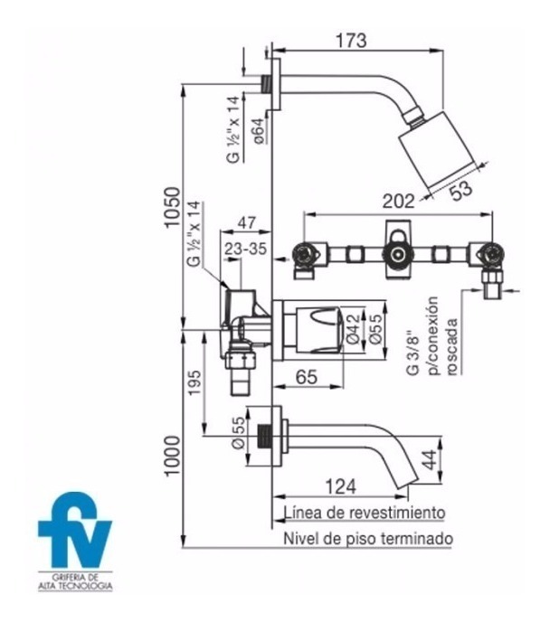 -Grifería Fv Pampa Ducha de embutir con transferencia