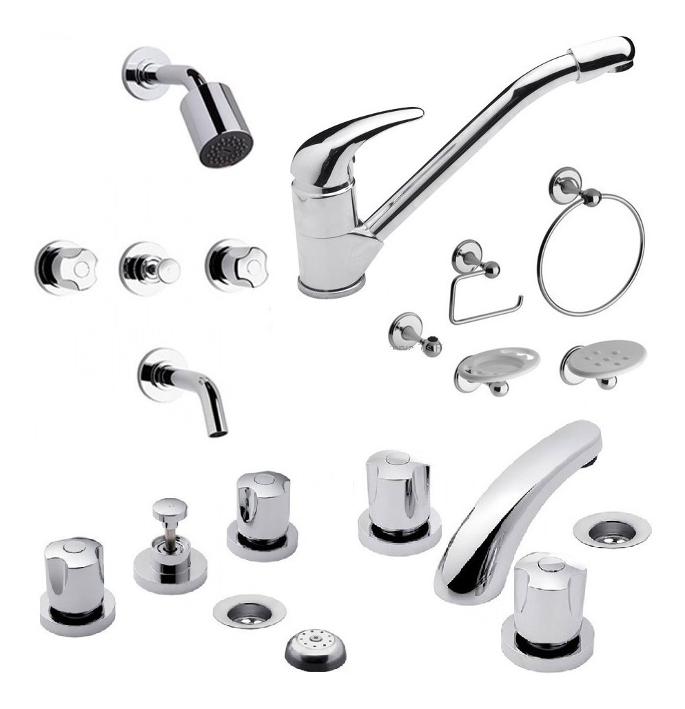 Combo Griferias Fv Pampa Baño, Kansas Cocina Y Kit Fv Mikka