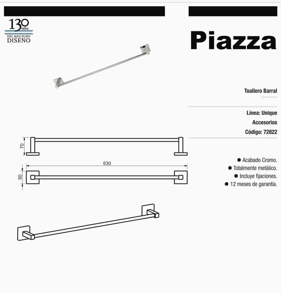Toallero Barral Piazza Bano Accesorio Cromado Linea Guilty