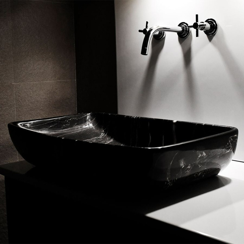 Bacha Ferrum Petra De Apoyo Rectangular Marmolado Negro