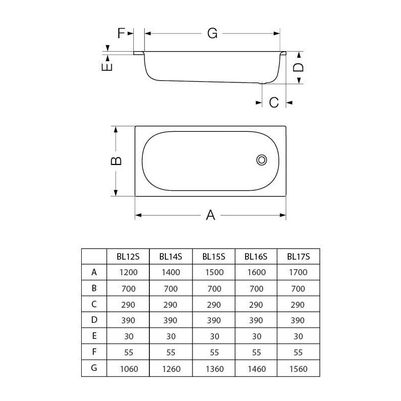 Banera Ferrum Chapa Enlozada 170 X 70 X 39 Blanco Bl17s
