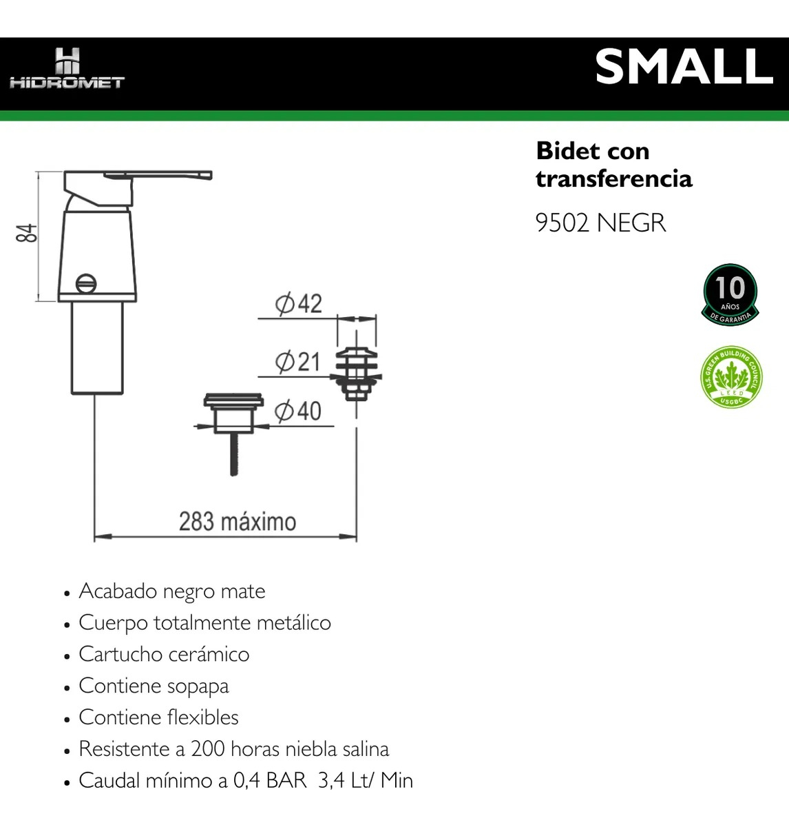 Griferia Hidromet Bidet C/transferencia Small Negro