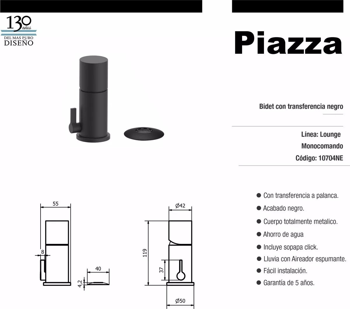 Griferia Piazza Lounge Monocomando Negro Bidet