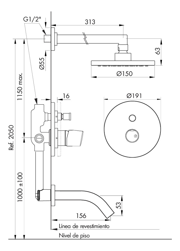 Griferia Fv Cilindra Ducha Embutir C/t Negro 0106/m5-ng