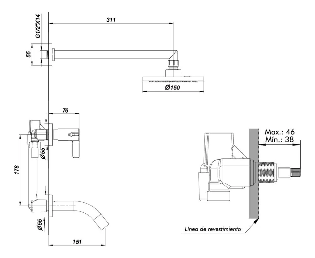 Griferia FV Mauna ducha de embutir con transferencia Cromo 0103/G8-CR