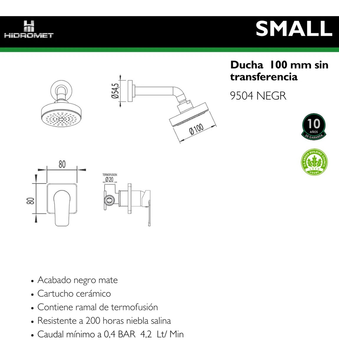 Griferia Hidromet Small Negro Ducha Sin Transferencia