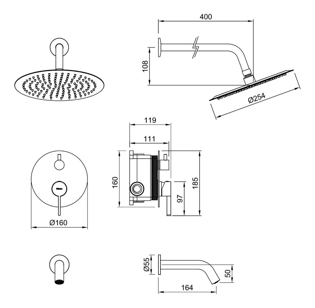 Griferia Peirano Steel Ducha Embutir Monocomando 80-205