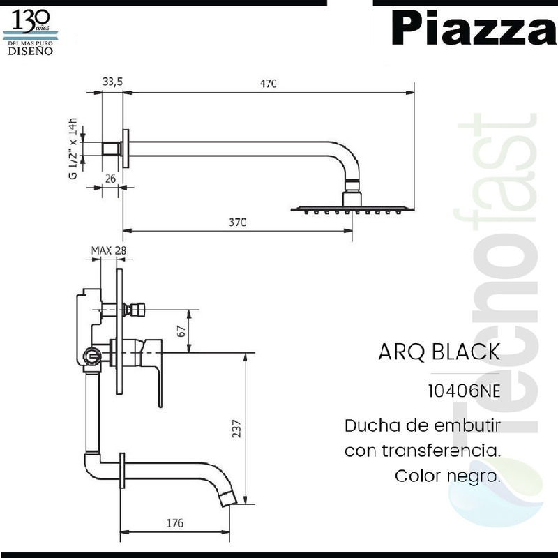 Grifería Ducha Monocomando Embutir Piazza Arq Negro