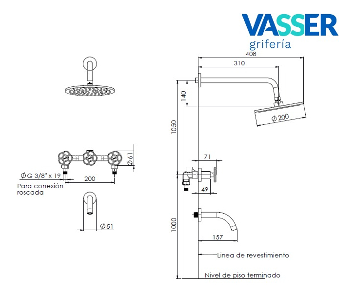 GRIFERIA VASSER BLUME BLACK DUCHA EMBUTIR CON TRANSFERENCIA