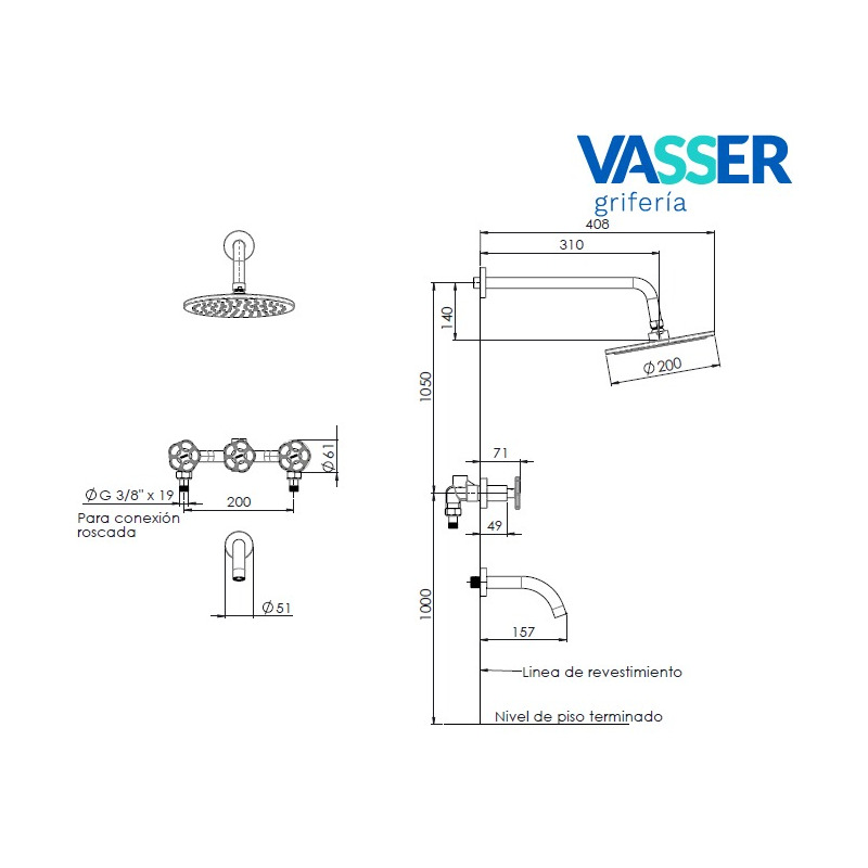 Griferia Vasser Blume Cromo Ducha Embutir Con Transferencia