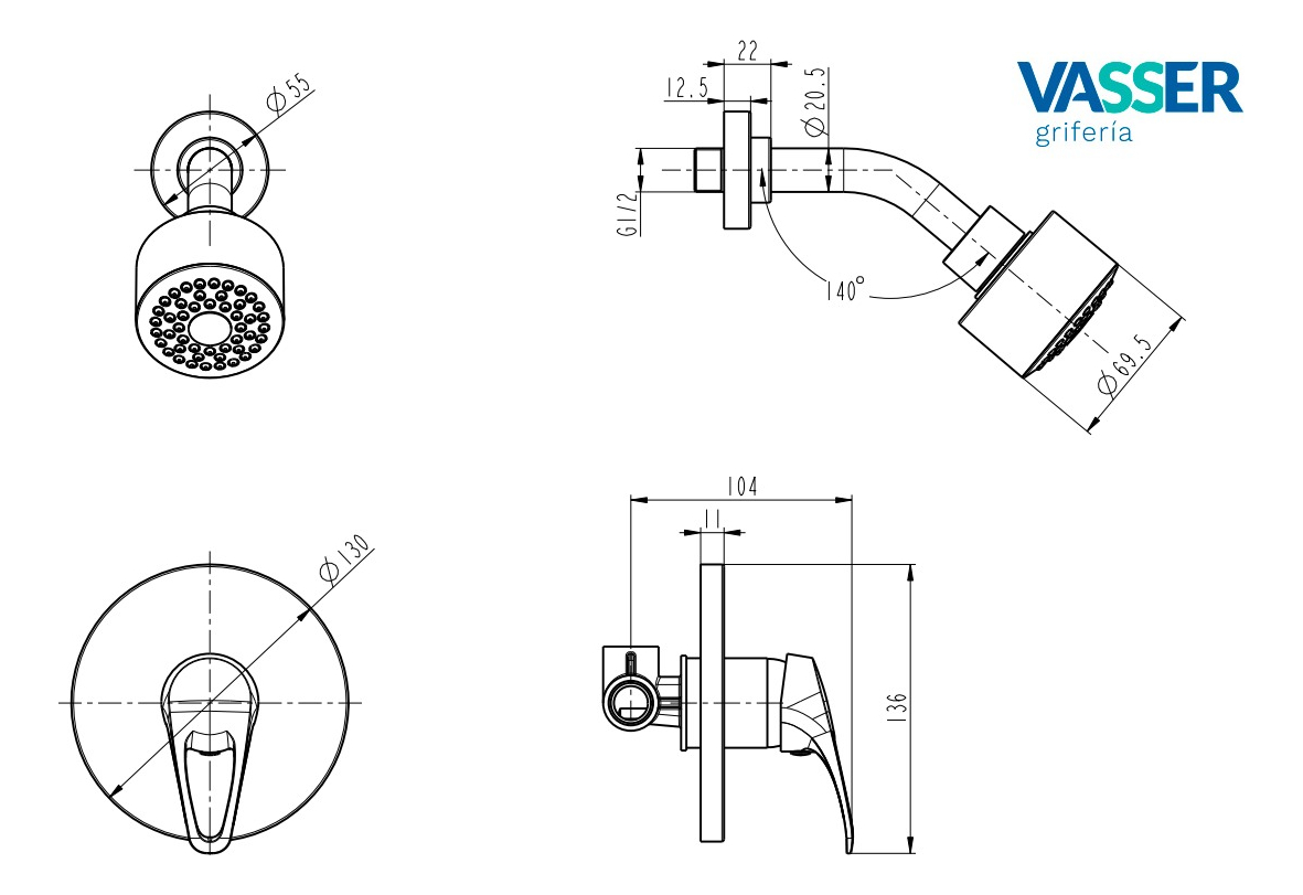 GRIFERIA VASSER IRIS DUCHA EMBUTIR SIN TRANSFERENCIA