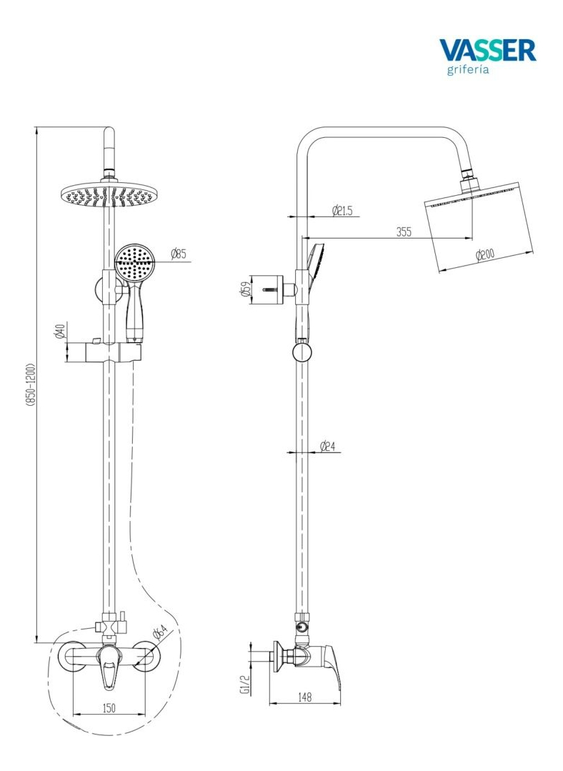 Griferia Vasser Iris Ducha Exterior Con Barral Y Duchador