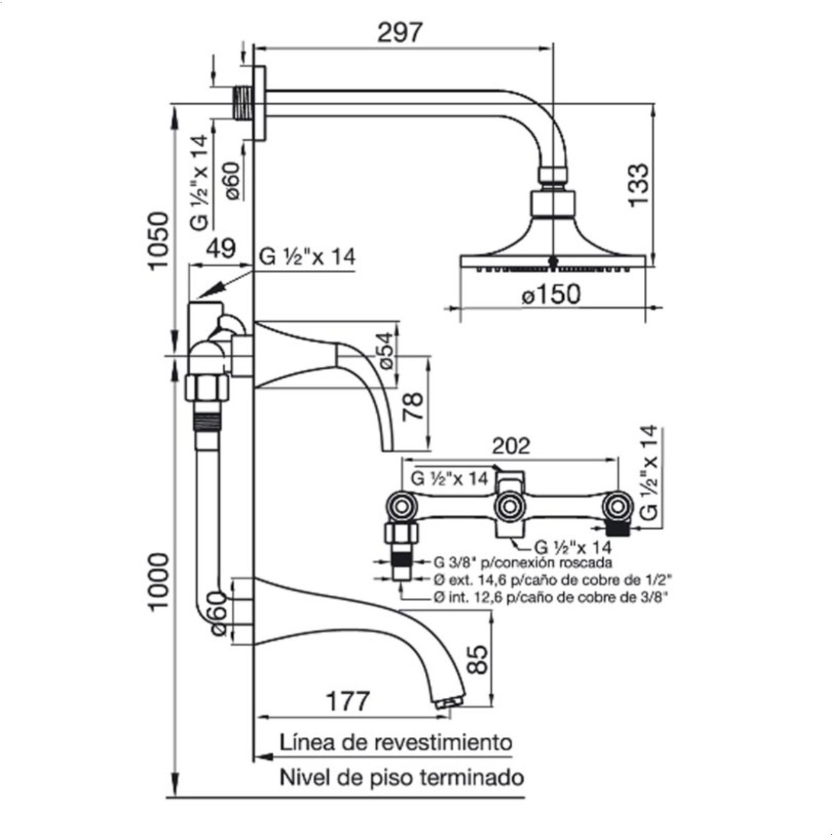 Griferia Fv Alesia Lever Ducha De Embutir 103/49l Fv Baño