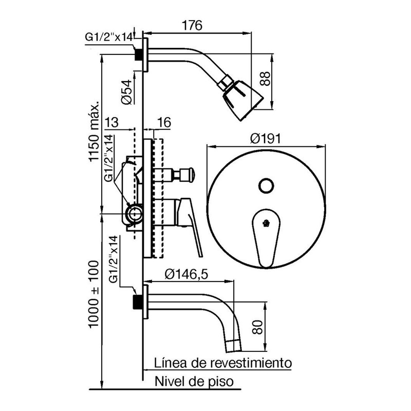 Griferia Fv Compacta Ducha Embutir Con Transferencia