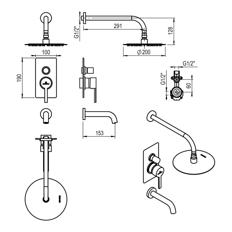 Griferia Hidromet Storm Black Ducha de Embutir 4803NEGR