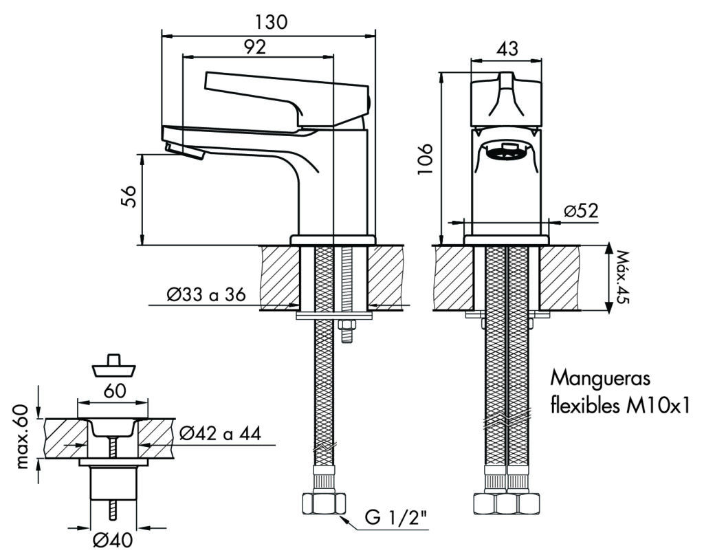 Griferia Fv Alba Monocomando Lavatorio Bajo 0181/G9-CR