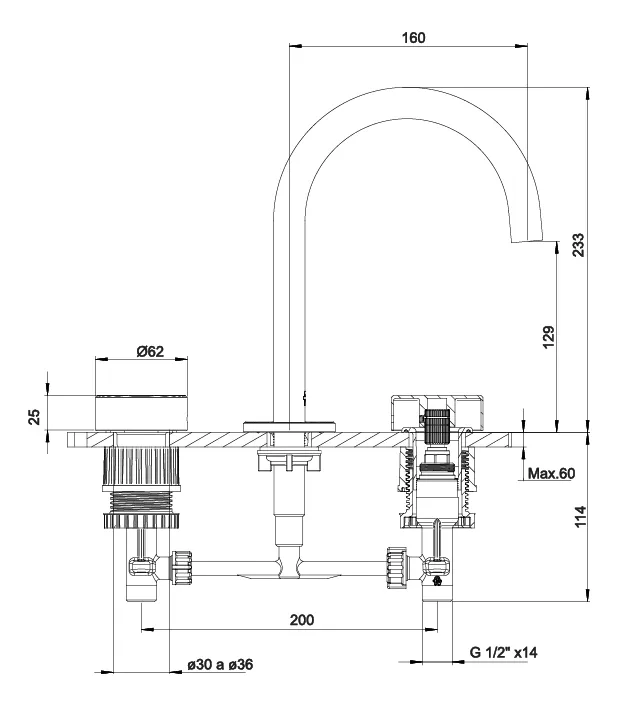 Griferia FV Grip Lavatorio Mesada Brushed Brass 0207/L8-BB