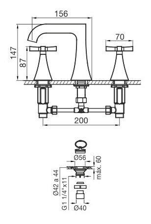 Griferia Fv Urbano Cruz Lavatorio Mesada 0207/h3-CR