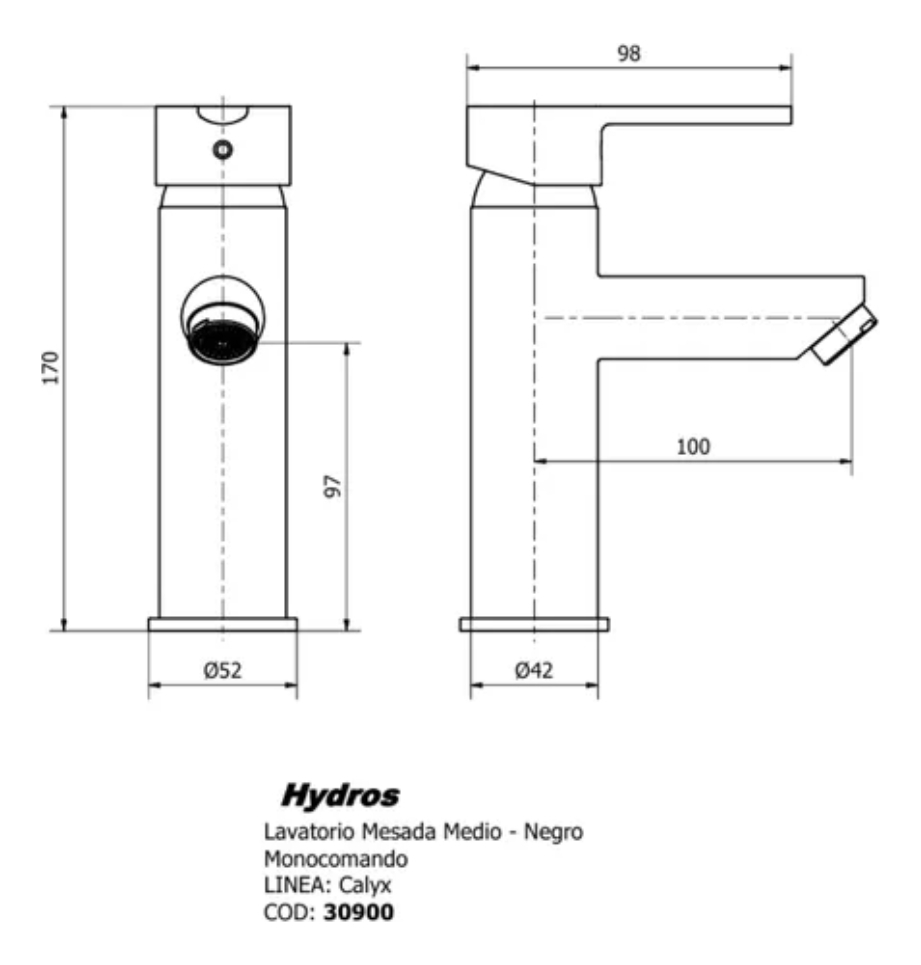 Grifería Hydros Calyx Lavatorio Medio Negro Mate 30900