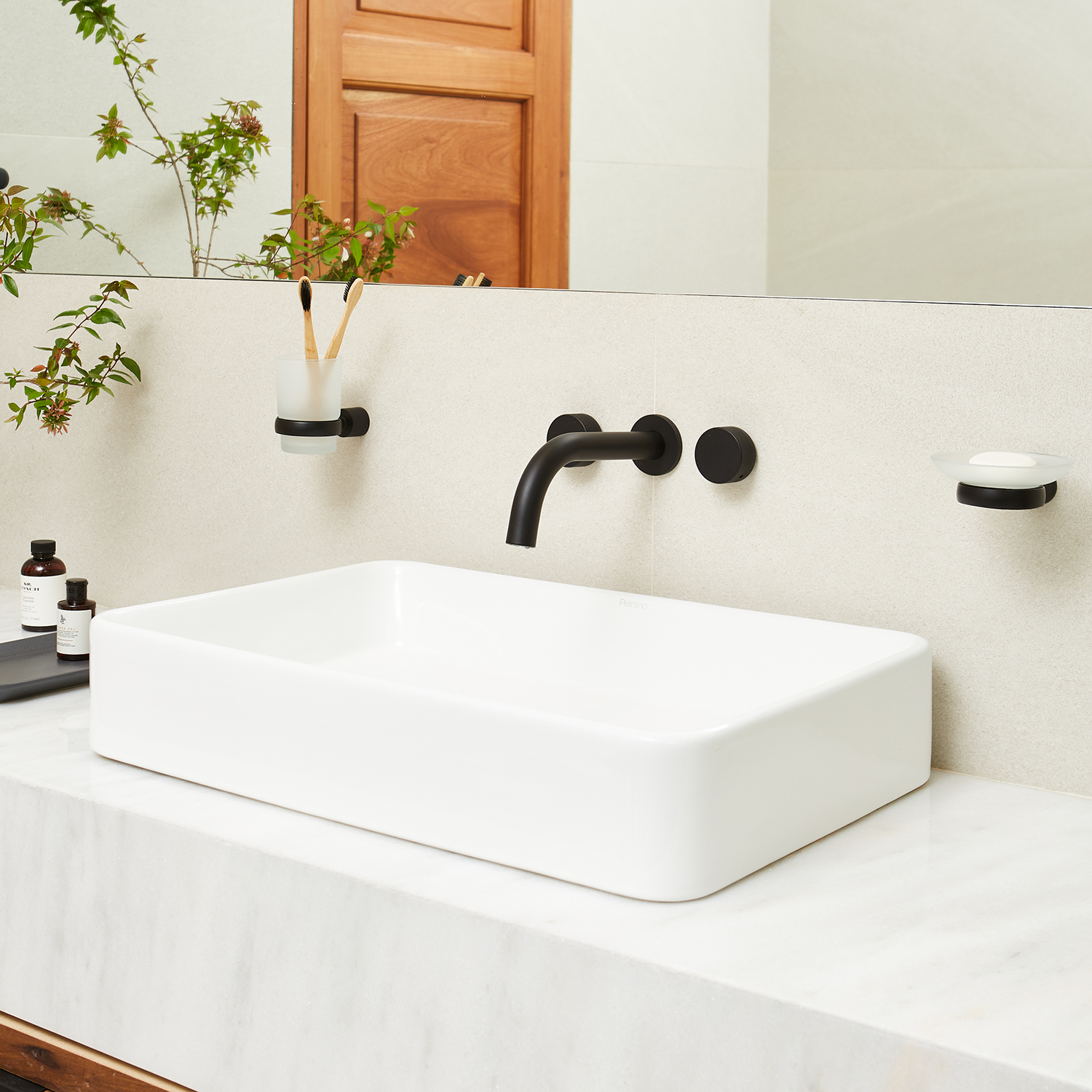 Griferia Peirano Fabric Negra Lavatorio Pared 62-100n