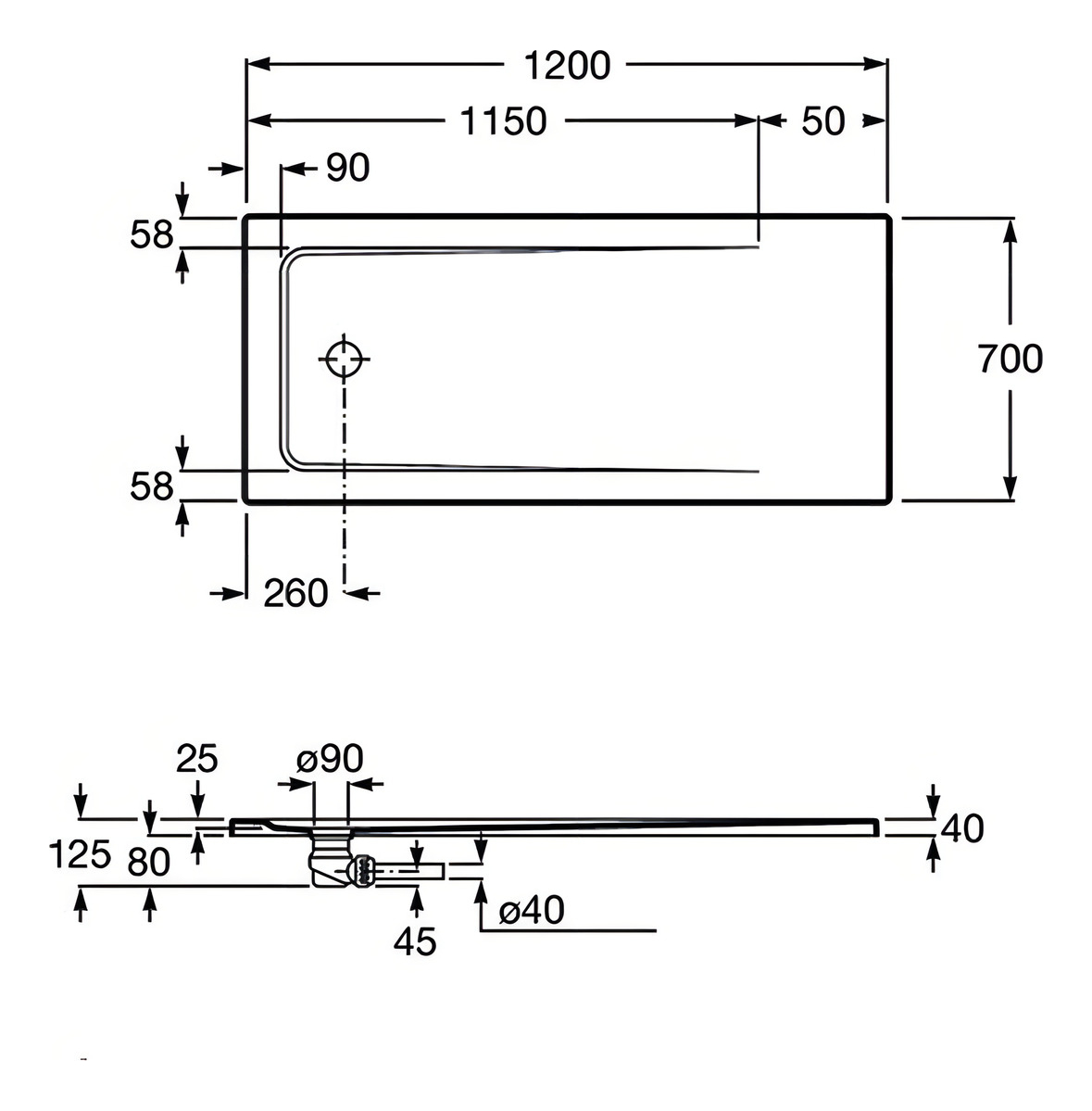 Receptáculo de baño Roca con antideslizante de 120×70 *NO INCLUYE DESAGÜE