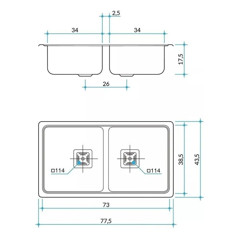 Bacha Johnson Acero 304 Quadra Q76 Bajo Mesada