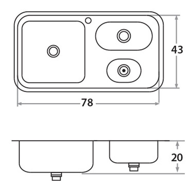 BACHA MI PILETA DE ACERO INOXIDABLE DOBLE ENCASTRABLE CUADRADA 78X43X20