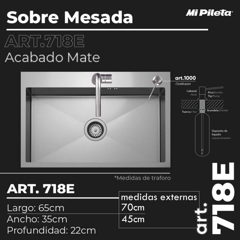 Bacha Cocina Acero Inoxidable Mi Pileta 718e + Dosificador