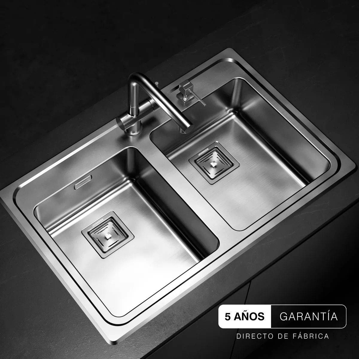 BACHA JOHNSON ACERO 304 QUADRA Q084 A SOBRE MESADA Q084AD/D con orificio para el dosificador