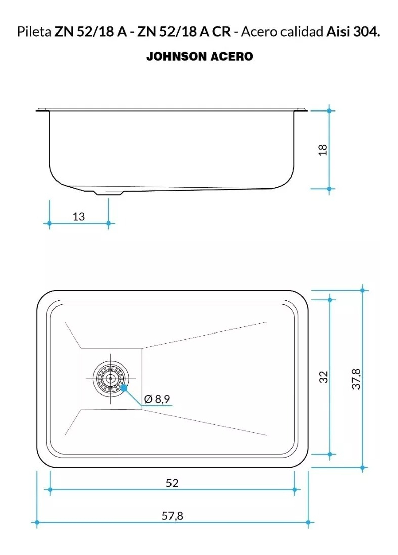 Bacha Johnson Acero 304 Zn52/18 A Sobre Mesada