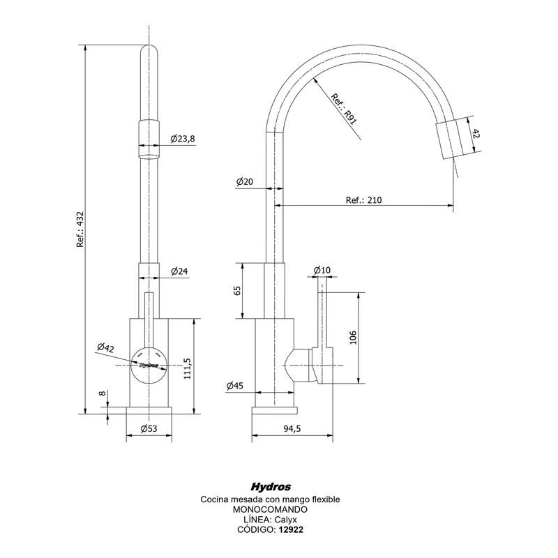 Griferia Cocina Hydros Calyx Acero-negro Flexible 12922