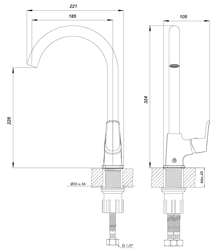 | Lugar de colocación | Mesada |
