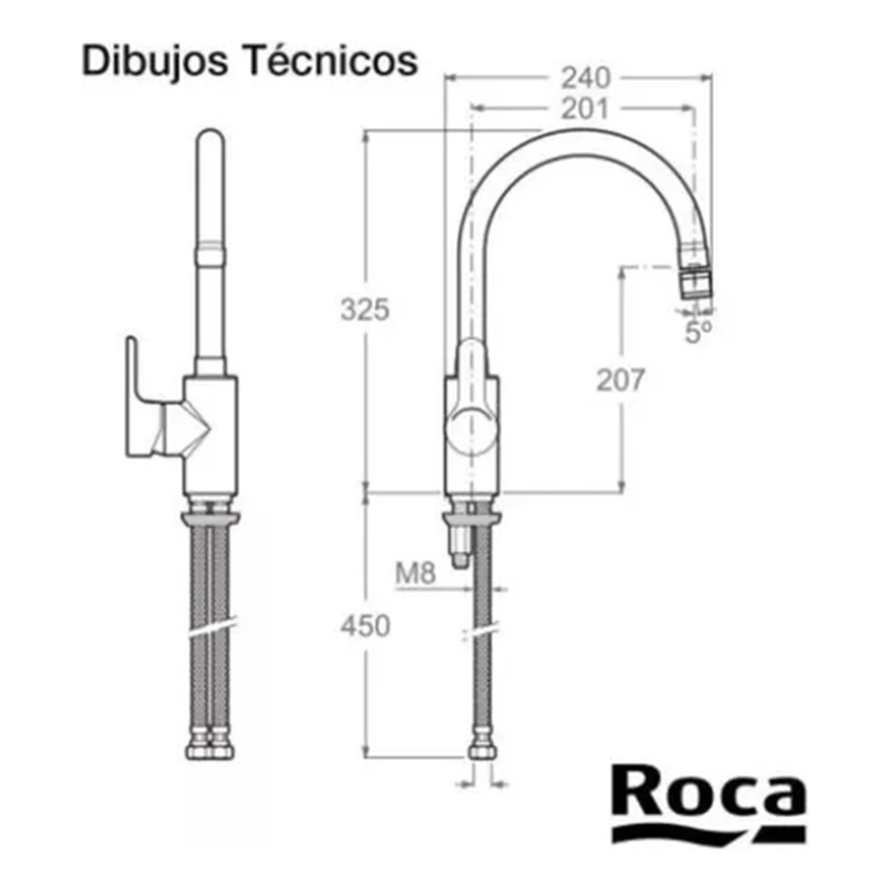 Griferia Roca L20 Cocina Mesada Pico Bar Monocomando