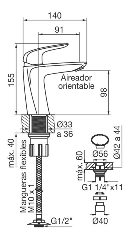 · Grifería Fv Epuyen monocomando lavatorio 0181/L2-NG Negro