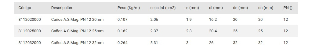 Peso por metro: 0.107 kg