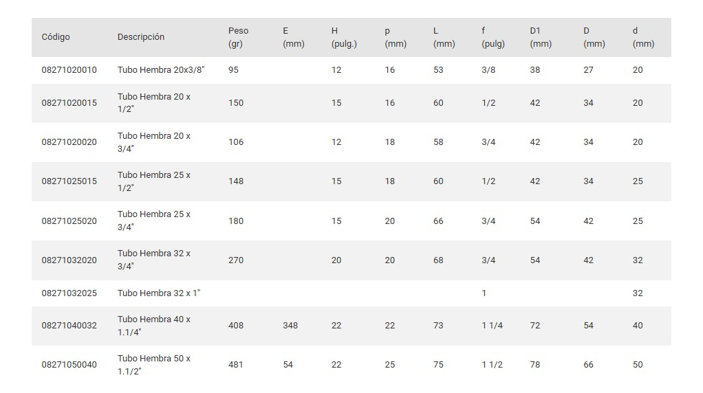 Tubo Hembra Acqua System 25×3/4