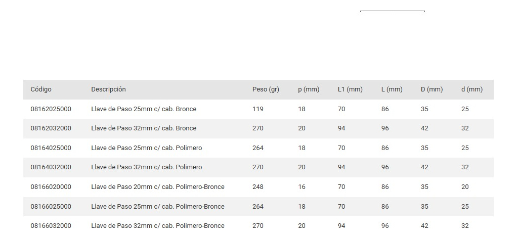 | Tipo de válvula | Llave de paso |